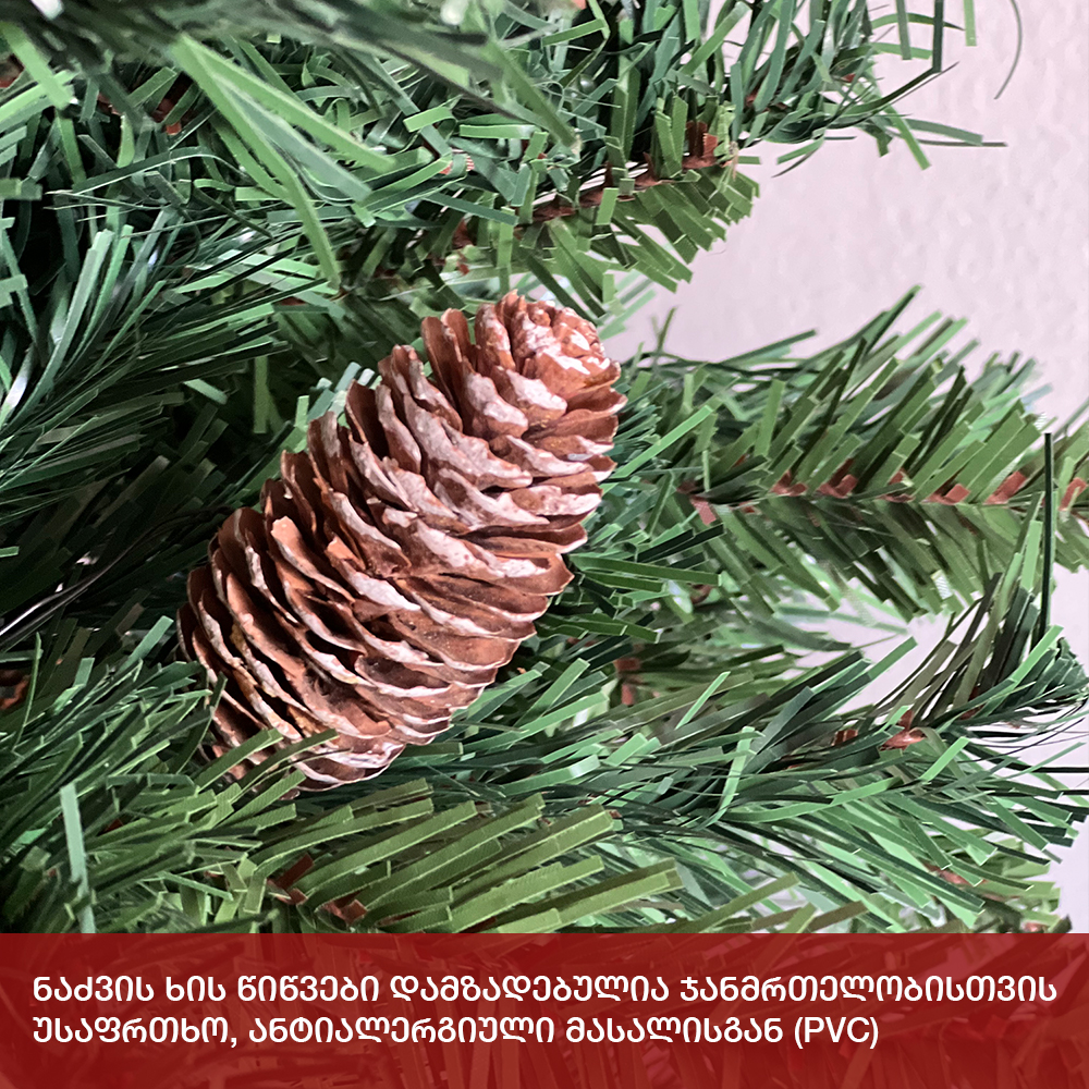 - გამძლე დრეკადი მეტალის ტოტებით და ჯანმრთელობისთვის უსაფრთხო მასალისგან დამზადებული წიწვებით.
