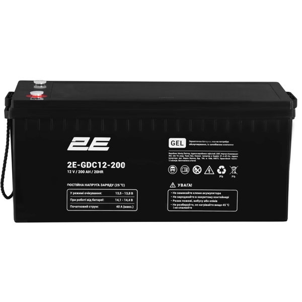 უწყვეტი კვების წყაროს ელემენტი 2E 2E-GDC12-200 GDC, 12V, 200Ah, GEL VRLA, Uninterruptible Power Supply Element, Black
