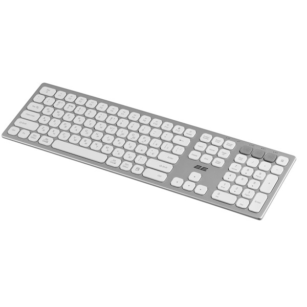 კლავიატურა 2E 2E-KS270WBWH Scissor, Wireless, USB, Bluetooth, Keyboard, White/Silver