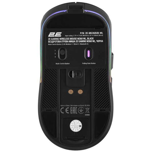 მაუსი 2E 2E-MG360UB-WL, Wireless, RGB , 2.4G, Bluetooth, USB, Gaming Mouse, Black