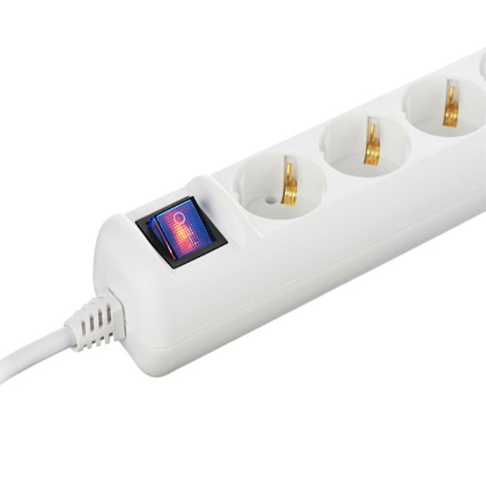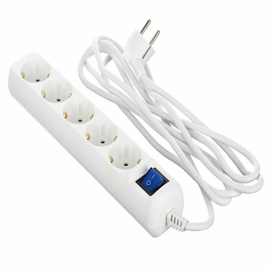 დამაგრძელებელი 2E 5XSchuko with switch, 3G*1.5mm2, 3m, white