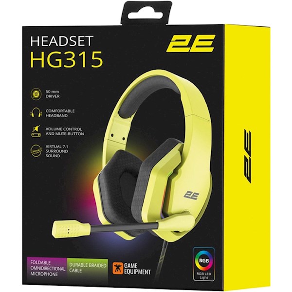 ყურსასმენი 2E HG315 Gaming Headset, Wired, RGB, USB, Yellow