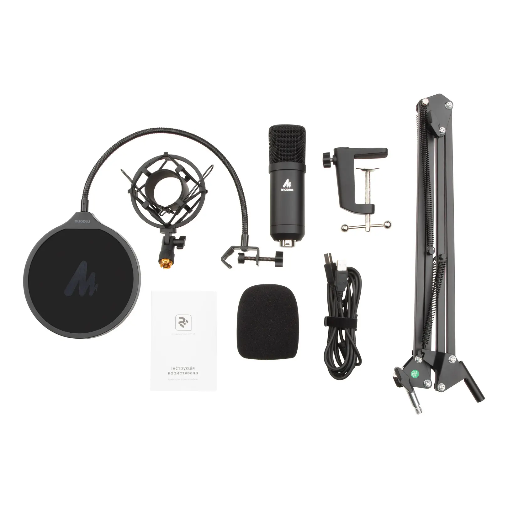 - ნაკრები: მიკროფონი, USB კაბელი, პანტოგრაფი მაგიდის სამაგრით, პოპ ფილტრი, სამონტაჟო, სახელმძღვანელო
