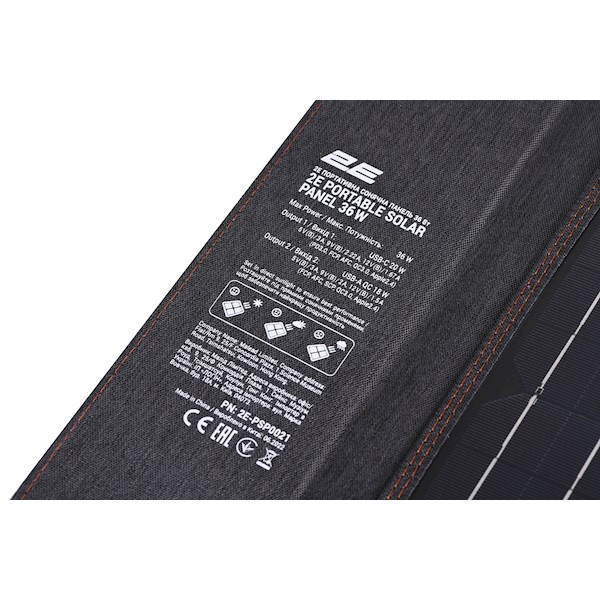 პორტატული დამტენი მზის ენერგიით 2E portable solar panel, 36 W, USB-С 20W, USB-A 18W