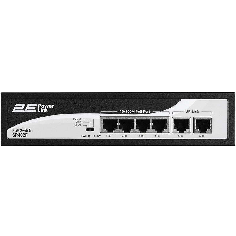 სვიჩი 2E PowerLink Switch SP402F 6xFE (4xPoE, 2xUplink), 55W, Unmanaged