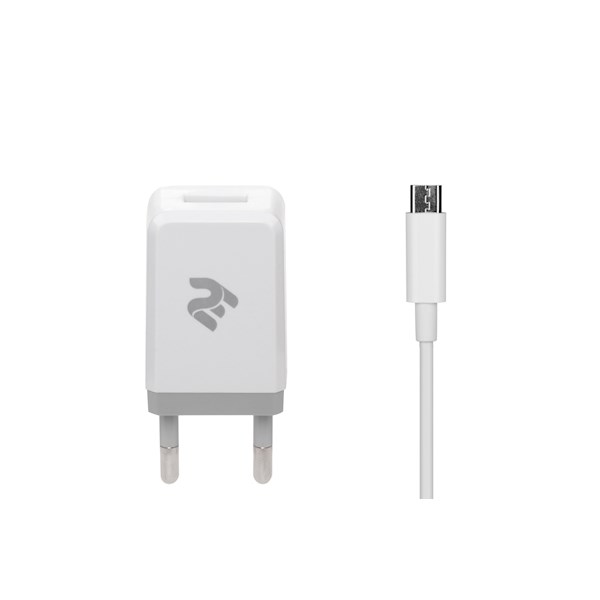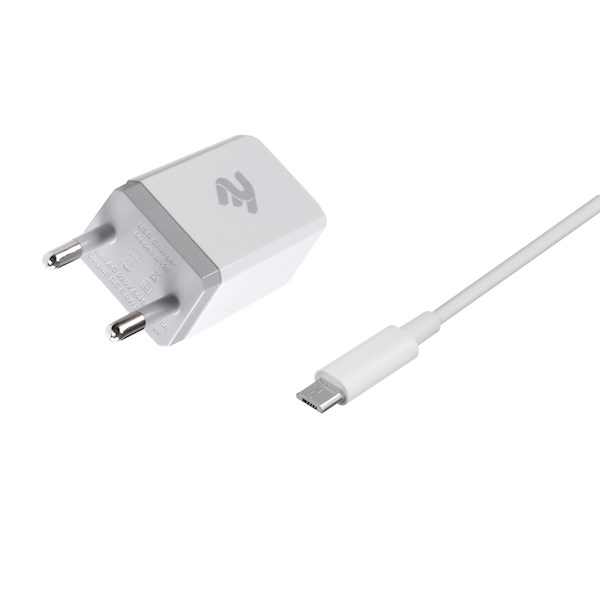 მობილურის დამტენი 2E Wall Charger Set USBx2.1A + Cable MicroUSB, 2.4A, 1m, White
