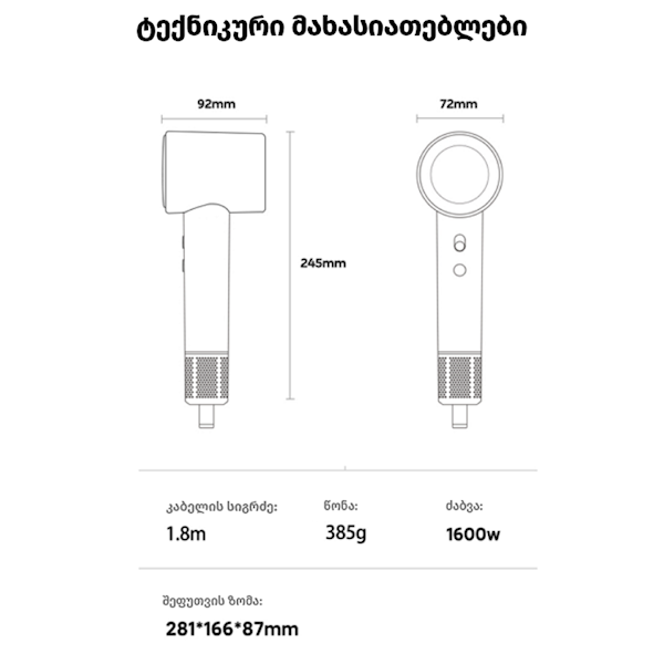 - ფუნქცია: თმის სწრაფი გაშრობა