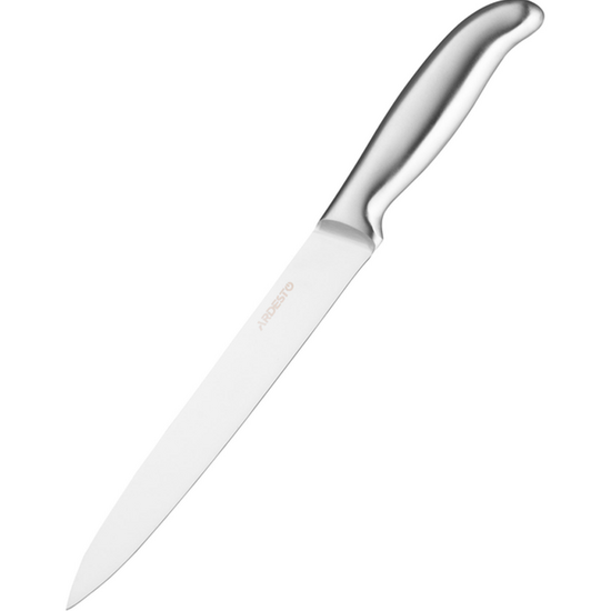 Ardesto AR2136SS სამზარეულოს დანა შექმნილია პრაქტიკული და ყოველდღიური გამოყენებისთვის, რაც მას შეუცვლელ აქსესუარად აქცევს თქვენს სამზარეულოში. დანა დამზადებულია მაღალი ხარისხის უჟანგავი ფოლადისგან, რომელიც გამორჩეულია გამძლეობით და გრძელვადიანი სიმკვეთრით. მისი ერგონომიული სახელური კომფორტულ მოჭიდებას უზრუნველყოფს, რაც საჭრელ პროცესს უფრო მარტივსა და უსაფრთხოს ხდის. Ardesto AR2136SS იდეალურია ხორცის, ბოსტნეულის, ხილისა და სხვა პროდუქტების ზუსტი და მარტივი დაჭრისთვის. თანამედროვე და მინიმალისტური დიზაინი შეესაბამება ნებისმიერ სამზარეულოს ინტერიერს, ხოლო მისი გამძლე კონსტრუქცია უზრუნველყოფს ხანგრძლივ მომსახურებას.