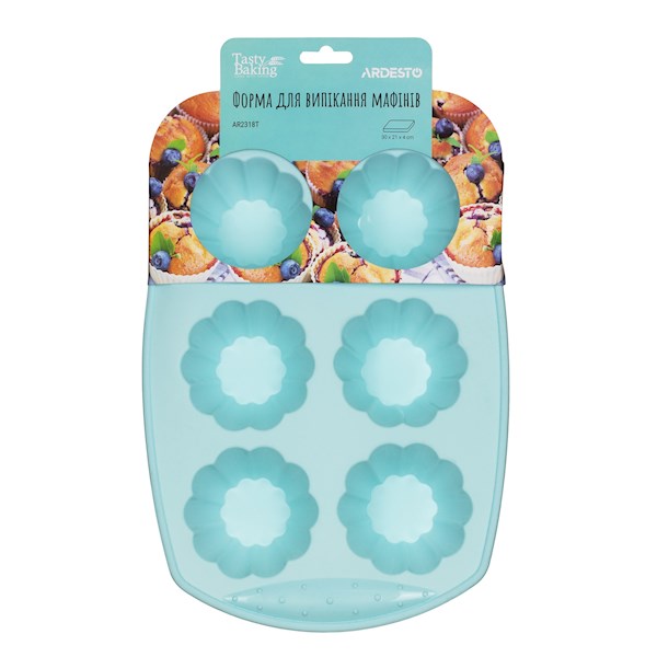 საცხობი ფორმა Ardesto AR2318T 6 Cup Muffin pan Tasty Baking, Silicone, Blue