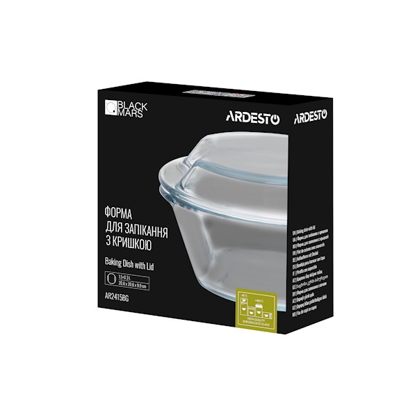 საცხობი ჭურჭელი Ardesto AR2415BG 1.5L Baking Dish With Lid Black Mars Round