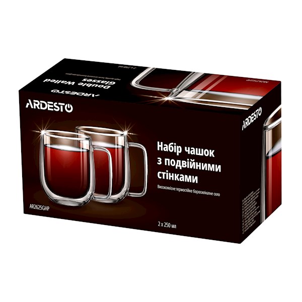 ჭიქების ნაკრები Ardesto AR2625GHP 250ml, 2 pcs Double Wall Borosilicate Glass Mug Set With Handles