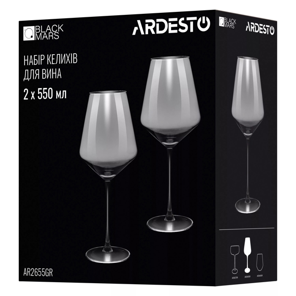 ჭიქების ნაკრები Ardesto AR2655GR Black Mars Avior, 550ml, 2pcs, Wine Glasses Set, Srey/Transparent