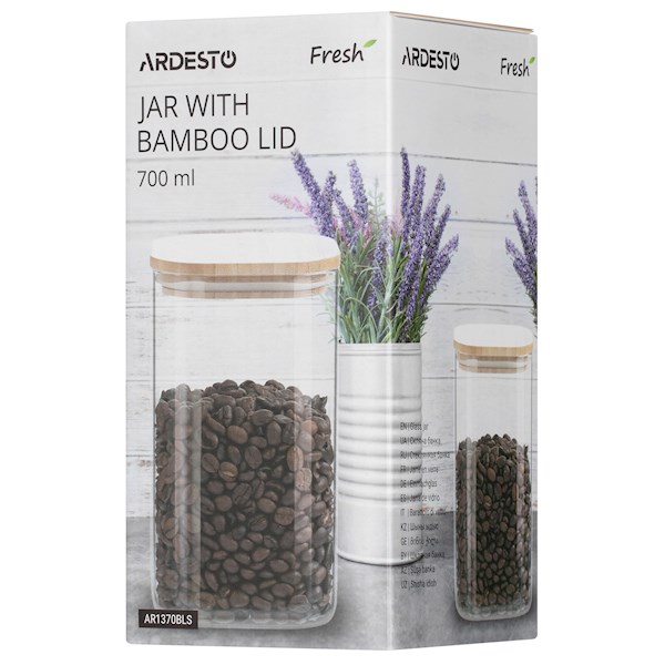 ქილა Ardesto Jar Fresh, 700 ml, square, glass, bamboo