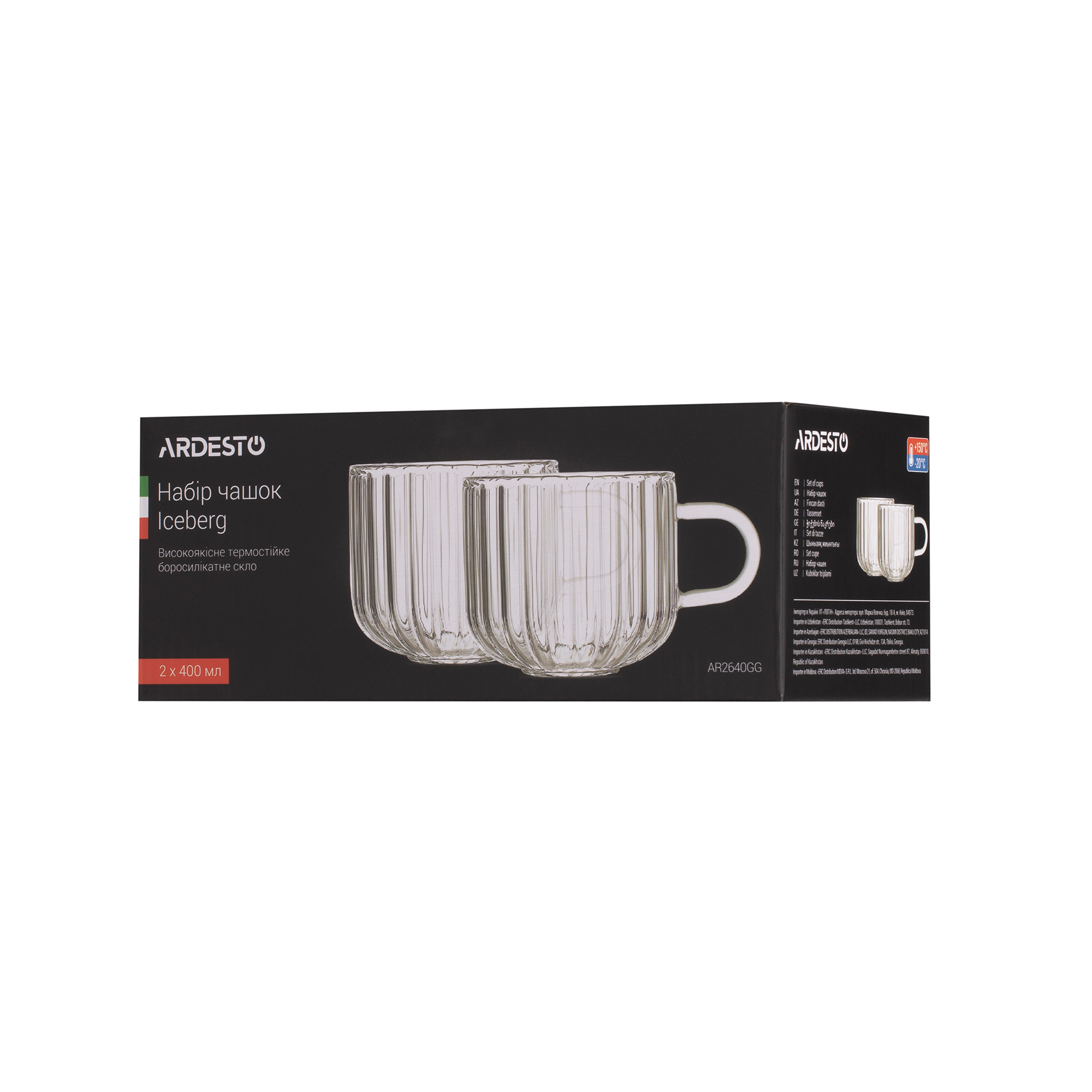 ჭიქების ნაკრები Ardesto Set of cups Iceberg A, 400ml, 2pcs, borosilicate glass, transparent