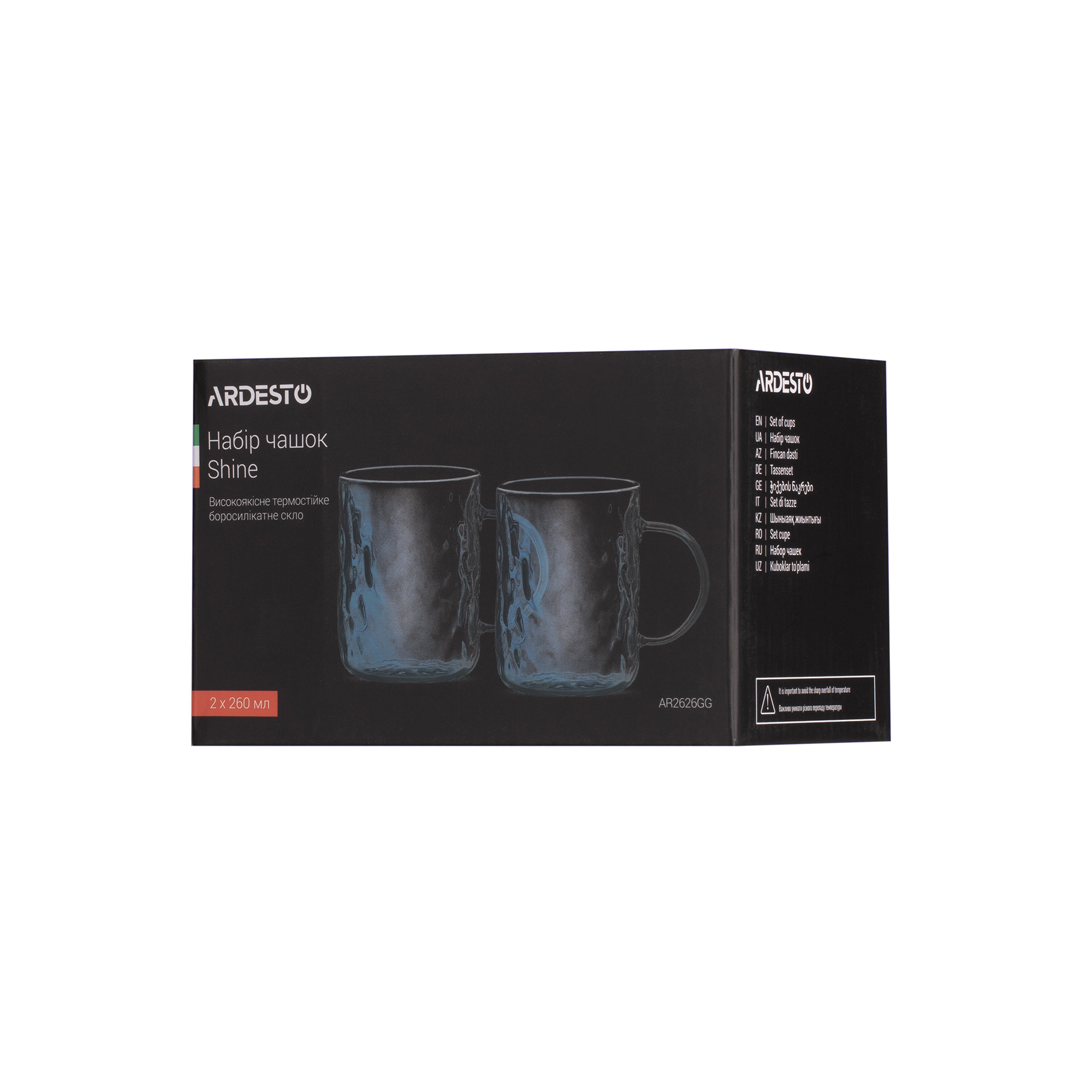 ჭიქების ნაკრები Ardesto Set of cups Shine, 260ml, 2pcs, borosilicate glass, gray