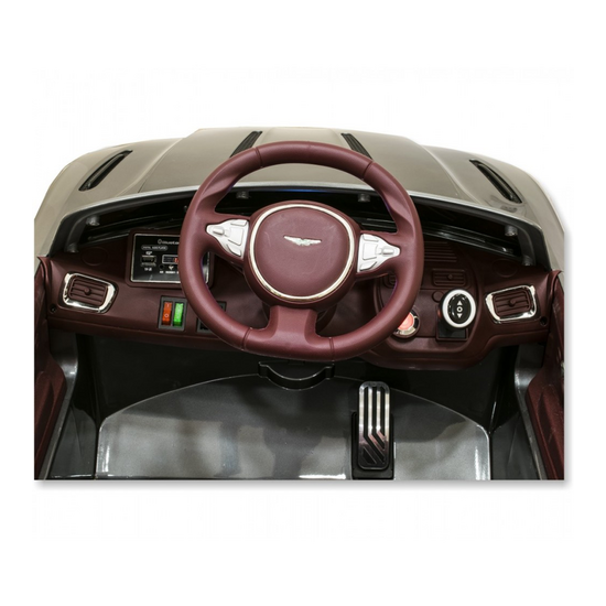ბავშვის ელექტრო მანქანა ASTON MARTIN DB11 კაუჩუკის საბურავებით და ტყავის სკამით