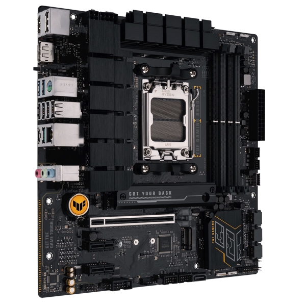 ASUS TUF GAMING B650M-E არის მძლავრი და საიმედო mATX დედა დაფა, რომელიც შექმნილია AMD-ის უახლესი sAM5 პლატფორმისთვის. დაფა იყენებს B650 ჩიპსეტს და ოპტიმიზირებულია Ryzen 7000 სერიის პროცესორებთან მუშაობისთვის. აღჭურვილია 2 სლოტით DDR5 მეხსიერებისთვის, რაც უზრუნველყოფს სისწრაფესა და მაღალი წარმადობის მხარდაჭერას. PCIe და M.2 სლოტები საშუალებას გაძლევთ დაამატოთ მძლავრი SSD-ები და ვიდეო ბარათები. HDMI და DisplayPort პორტები იდეალურია მრავალეკრანიანი მუშაობისთვის. გამძლე კომპონენტები და TUF სერიის სტანდარტები ამ დედა დაფას ხდის სტაბილურ და ხანგრძლივ პარტნიორად როგორც თამაშში, ასევე ყოველდღიურ გამოყენებაში. კომპაქტური mATX დიზაინი უზრუნველყოფს მარტივ ინტეგრაციას მცირე კორპუსებში.