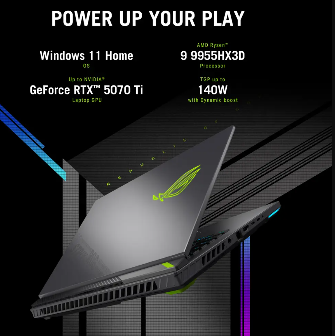 Asustek ROG Strix G16 (2025) განკუთვნილია გეიმერებისთვის და პროფესიონალებისთვის, რომლებიც ეძებენ მძლავრ და სტაბილურ ლეპტოპს. 16-დიუმიანი 2.5K გარჩევადობის ეკრანი 240Hz განახლების სიხშირით უზრუნველყოფს შეუდარებელ სიზუსტეს და რეალისტურ ვიზუალურ გამოცდილებას. Ryzen 9 9955HX3D პროცესორი და NVIDIA RTX 5070 Ti 12GB გრაფიკული ბარათი უზრუნველყოფს უმაღლეს წარმადობას. 16GB ოპერატიული მეხსიერება და 1TB G4 SSD გაძლევთ სწრაფ მუშაობასა და დიდი მოცულობის შენახვის შესაძლებლობას. სტილური Eclipse Gray კორპუსი აერთიანებს ესთეტიკასა და გამძლეობას. იდეალური არჩევანია მობილური გეიმინგისა და მძიმე პროგრამებისთვის.