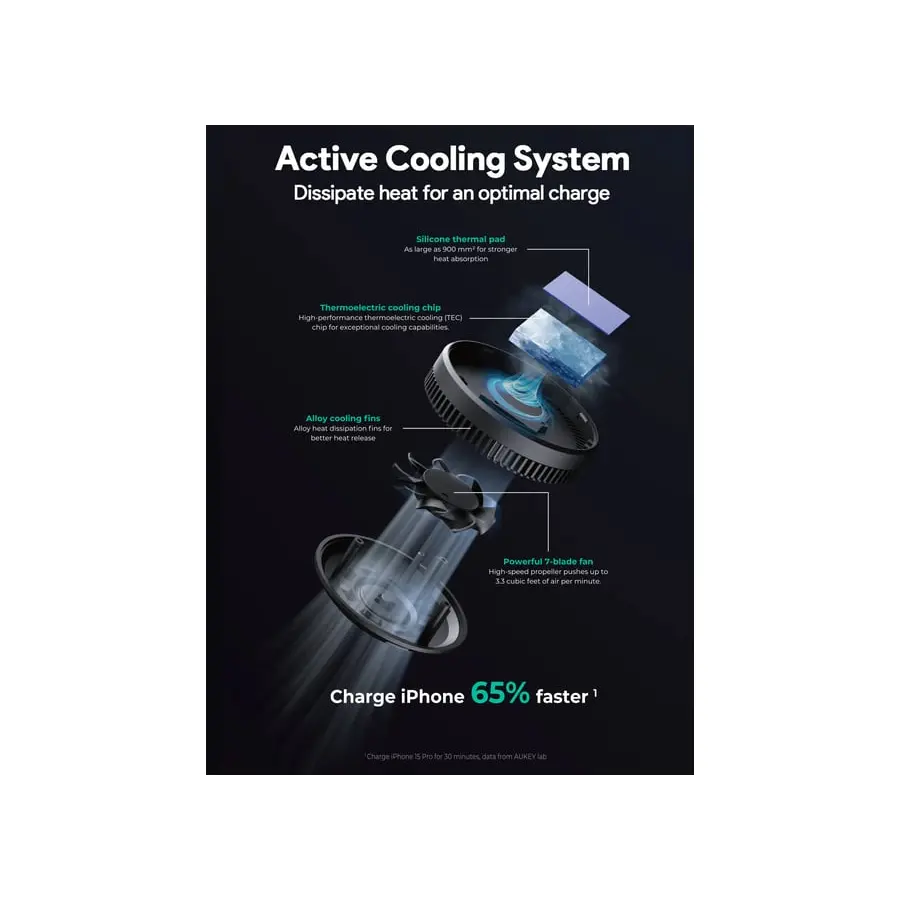 ავტომობილის უსადენო დამტენი Aukey 15W HD-MC13A MagFusion Dash Pro Qi2 Active Cooling Wireless Charging Phone Mount - Gray