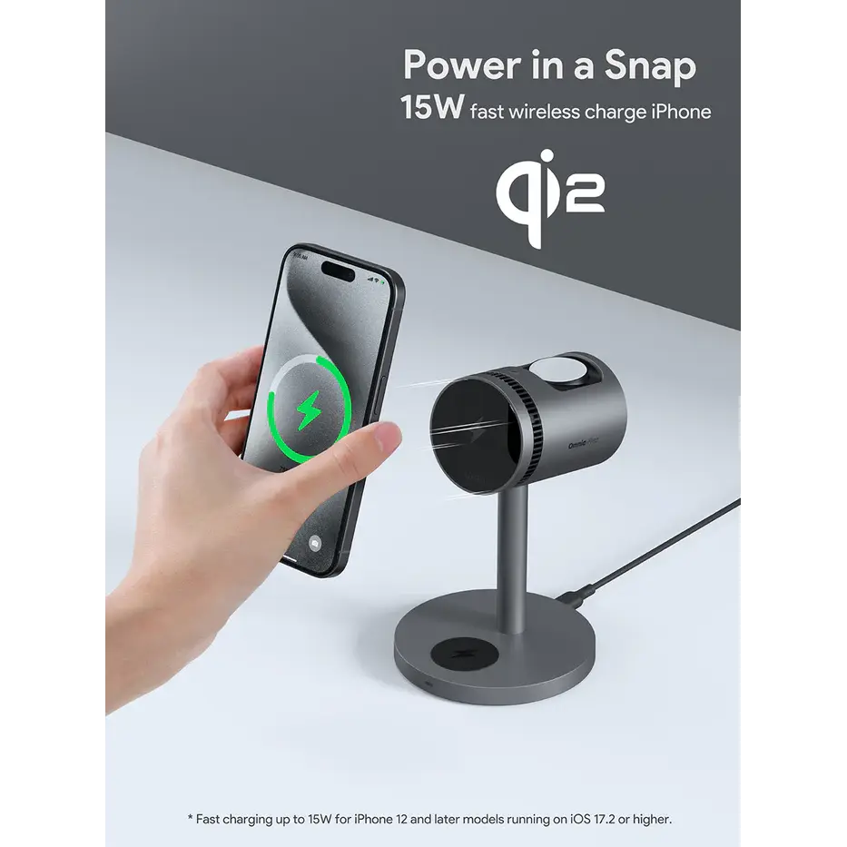 უსადენო დამტენი Aukey 3 in-1 15W LC-MC311A MagFusion Pro Qi2 Active Cooling Wireless Charging Station Gray