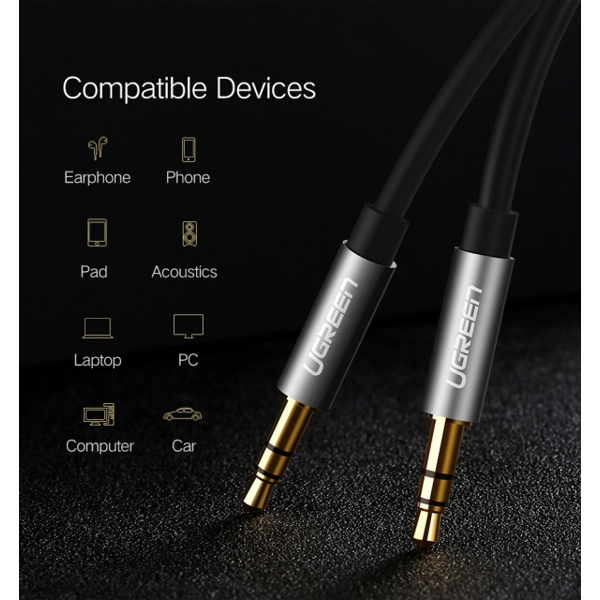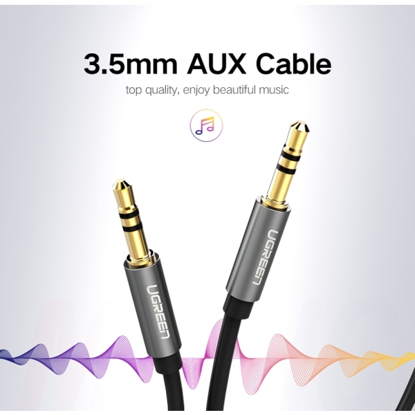 AUX კაბელი UGREEN AV119 (10732) 3.5mm Male to 3.5mm Male Cable 0.5m (Black)