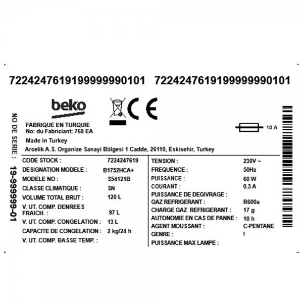 ჩასაშენებელი მაცივარი BEKO B 1752 HCA