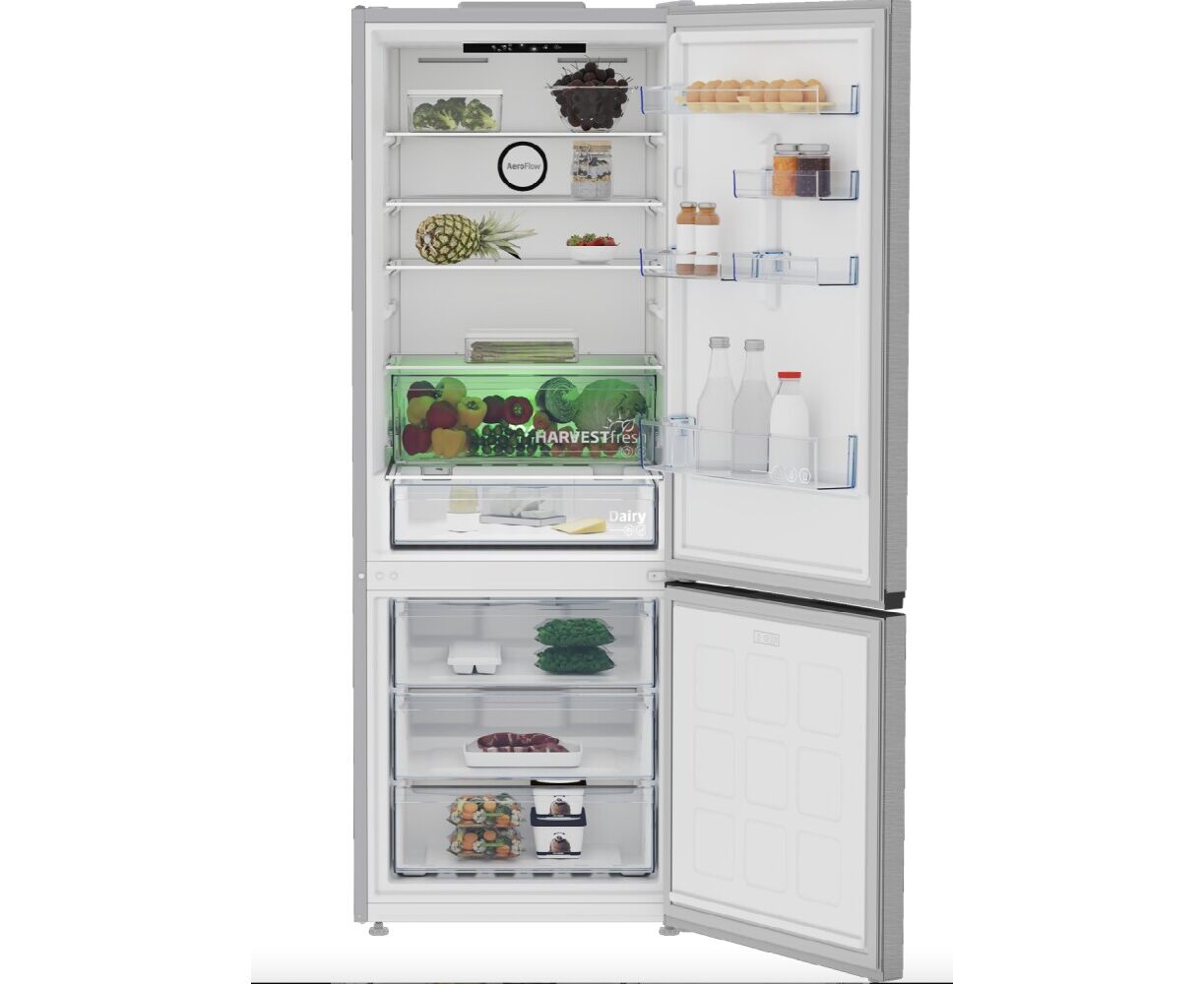 Beko B3RCNE564HXB არის თანამედროვე ორკამერიანი მაცივარი, რომელიც გამოირჩევა მაღალი ტევადობითა და ინოვაციური ტექნოლოგიებით. მისი საერთო მოცულობა 514 ლიტრია, რაც საკმარისია დიდი რაოდენობის პროდუქტების შესანახად. მაცივარი აღჭურვილია NeoFrost™ ორმაგი გაგრილების სისტემით, რომელიც უზრუნველყოფს ტენიანობის ოპტიმალურ დონეს და ხელს უშლის ყინულის დაგროვებას. HarvestFresh™ ტექნოლოგია ინარჩუნებს ხილისა და ბოსტნეულის ვიტამინებს სპეციალური განათების მეშვეობით. ინვერტორული კომპრესორი უზრუნველყოფს ენერგიის ეფექტურ გამოყენებას და ხანგრძლივ მუშაობას. მაცივრის შიდა სივრცე ორგანიზებულია მოსახერხებლად, მრავალრიცხოვანი თაროებითა და უჯრებით, რაც უზრუნველყოფს პროდუქტების მარტივ განლაგებას. Beko B3RCNE564HXB არის იდეალური არჩევანი მათთვის, ვინც ეძებს სანდო და თანამედროვე მაცივარს.