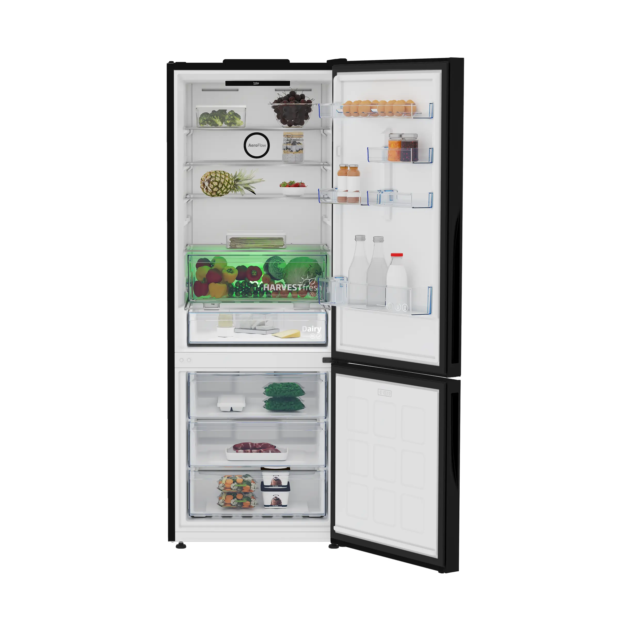 მაცივარი Beko B5RCNE565HXPBG არის თანამედროვე ტექნოლოგიებით აღჭურვილი მოწყობილობა, რომელიც იდეალურია დიდი ოჯახებისა და მათთვის, ვისაც სურს საკვები ხანგრძლივად და უსაფრთხოდ შეინახოს. ფართო მოცულობა საშუალებას გაძლევთ კომფორტულად მოათავსოთ როგორც მაცივარში, ისე საყინულეში პროდუქტები. ინოვაციური No Frost სისტემა გამორიცხავს ყინულის წარმოქმნას, რითაც ინარჩუნებს საკვების სიგრილეს და თავისუფლებას დამატებითი მოვლისგან. DuoCooling ფუნქცია უზრუნველყოფს მაცივარსა და საყინულეში ცალკე ტემპერატურულ ზონებს, რაც იცავს სუნების შერევას და ინარჩუნებს სისუფთავეს. ინვერტორული კომპრესორი მუშაობს ენერგოეფექტურად და დაბალი ხმაურით, რაც კომფორტულ გარემოს ქმნის სახლში. დამატებით, FreshGuard და სწრაფი გაგრილების რეჟიმები ხელს უწყობს ხილისა და ბოსტნეულის ვიტამინებისა და სისუფთავის შენარჩუნებას. უჟანგავი ფოლადის თანამედროვე დიზაინი მაცივარს ხდის არა მხოლოდ პრაქტიკულს, არამედ თქვენი სამზარეულოს ესთეტიკურ ნაწილსაც. ეს მოდელი არის სანდო, ენერგოეფექტური და ფუნქციური გადაწყვეტილება ყოველდღიური კომფორტისთვის.