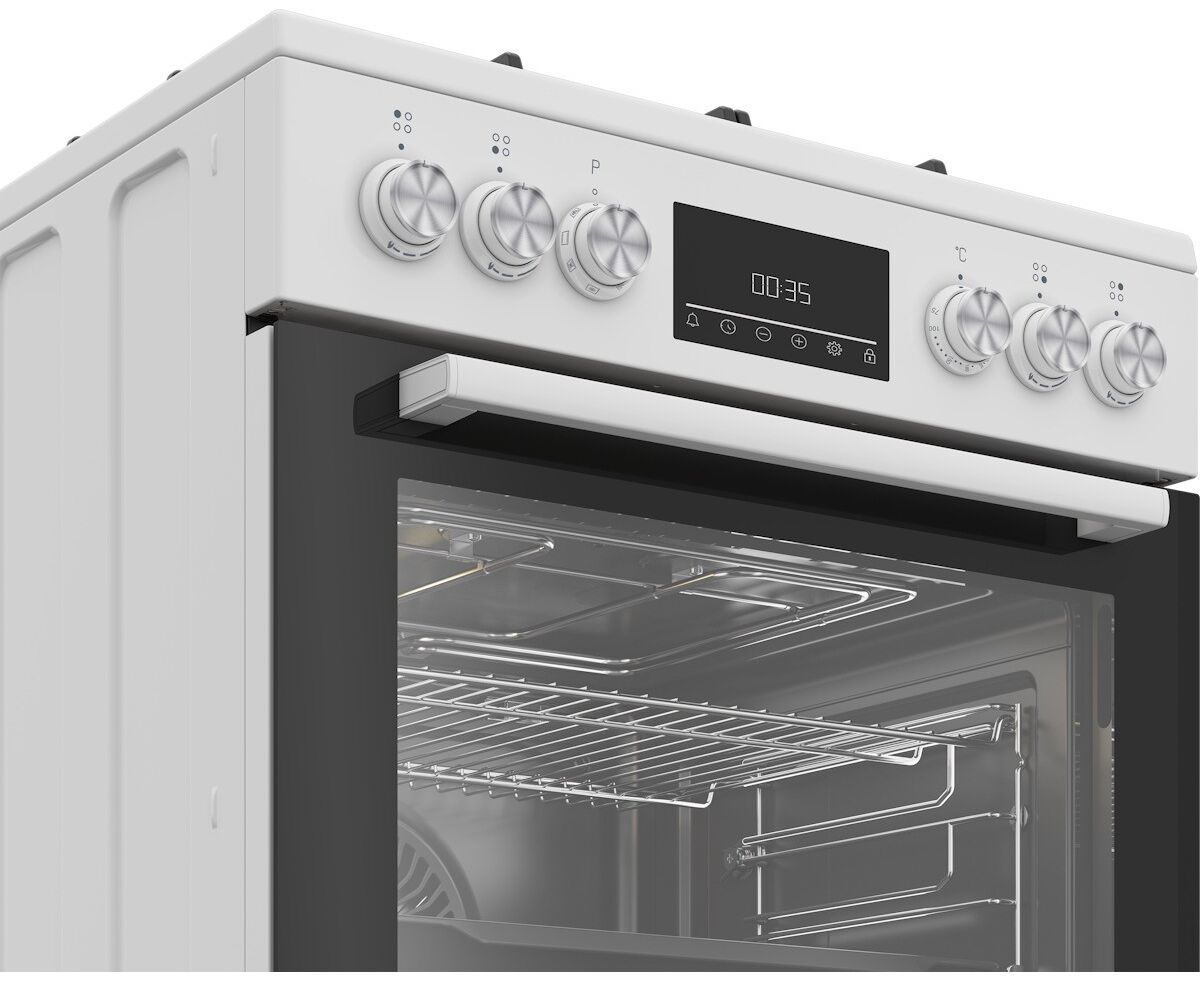 გაზქურა Beko FBM 62330 GWDTN–ს აქვს თანამედროვე და მოსახერხებელი დიზაინი, რომელიც იდეალურია ქალაქურ და ოჯახურ სამზარეულოში. ჩაშენებული 4 გაზქურით სისტემა უზრუნველყოფს სწრაფ და თანაბარ შეწვას. ინოქსის კორპუსი უძლიერესი და ოცქერა წმენდისთვის, ხოლო მინის კარი დამატებით იცავს გარე ნაწილებს ცხელი სიმძლავრისგან. ტემპერატურის კონტროლი მარტივი Drehknop–ებით და ელექტრონული დისპლეით გეხმარებათ, ზუსტად დაანგარიშოთ მომზადების დრო. გაზქურა აღჭურვილია ღუმელით 65 ლიტრის მოცულობით, ორმაგი ჩანთებითა და ენერგოეფექტური A კლასით, რაც უზრუნველყოფს აღემატებული შედეგებს დაბალი ხარჯებით. უსაფრთხოების გამო, მილის ავტომატური გამორთვის ფუნქცია უყურადღებობა გამოყენების შემთხვევაში. იდეალურია ოჯახებისთვის, რომლებიც ეძებენ საიმედო, გამძლე და მაღალი ხარისხის მოწყობილობას ყოველდღიური სამზარეულო საჭიროებისთვის. ასევე, FBM 62330 GWDTN თავსდება როგორც შესანიშნავი დამატება ნებისმიერ ინტერიერში, რაც აერთიანებს ტექნოლოგიურ შესაძლებლობებს და ვიზუალურ მიმზიდველობას.
