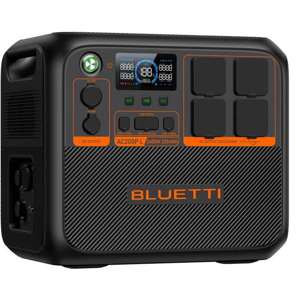 Bluetti AC200PL – მძლავრი და მრავალფუნქციური ელექტრო სადგური, რომელიც უზრუნველყოფს 2304Wh სიმძლავრეს და განკუთვნილია როგორც სახლის, ასევე გარე გამოყენებისთვის. მისი მაღალი ტევადობა საშუალებას გაძლევთ ერთდროულად დატენოთ და გამოიყენოთ სხვადასხვა მოწყობილობა – ლეპტოპები, სმარტფონები, ტაბლეტები, კამერები და ელექტრო ხელსაწყოები. აღჭურვილია USB-C, USB-A და AC პორტებით, რაც მრავალფუნქციურ და მოქნილ კავშირს იძლევა. გარდა ამისა, შესაძლებელია დამატებითი ბატარეის დაკავშირება, რაც ტევადობას კიდევ უფრო ზრდის. მისი შავი, კომპაქტური და გამძლე დიზაინი იდეალურად ერგება როგორც მოგზაურობისთვის, ასევე ენერგიის სარეზერვო წყაროდ სახლისთვის. Bluetti AC200PL – საიმედო და ძლიერი ენერგიის წყარო ნებისმიერი სიტუაციისთვის.