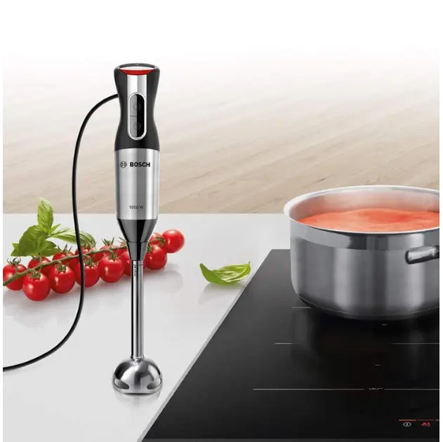ხელის ბლენდერი BOSCH MS62M6110 არის მძლავრი და კომპაქტური მოწყობილობა, რომელიც შესანიშნავად ერგება ყოველდღიური კულინარიული ამოცანების შესრულებას. 1000 ვატიანი ძრავა უზრუნველყოფს ინგრედიენტების სწრაფ და ერთგვაროვან დაქუცმაცებას, ხოლო უჟანგავი ფოლადის ოთხპირიანი პირები ინარჩუნებს სიმკვეთრეს და გამძლეობას ხანგრძლივი გამოყენების შემდეგაც. ErgoMixx დიზაინი ქმნის კომფორტულ ჭერას და ამცირებს ვიბრაციას, რაც გამოყენებას კიდევ უფრო სასიამოვნოს ხდის. მოწყობილობას მოჰყვება დამატებითი საცმელები და ჩასახმელი ჭიქა, რაც საშუალებას გაძლევთ მოამზადოთ სმუზი, სოუსი, სუპი ან ბლინების ცომი მარტივად. ყველა მოსახსნელი ნაწილი უსაფრთხოდ ირეცხება ჭურჭლის სარეცხ მანქანაშიც. BOSCH MS62M6110 არის შეუცვლელი დამხმარე სამზარეულოში, რომელიც აერთიანებს ძალას, სიზუსტეს და BOSCH-ის გამორჩეულ ხარისხს.