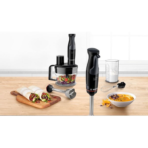 BOSCH MSM4B670 არის მძლავრი და მრავალფუნქციური ხელის ბლენდერი, რომელიც განკუთვნილია სხვადასხვა ინგრედიენტების სწრაფი და ეფექტური დამუშავებისთვის. მისი 1000 ვატიანი ძრავა უზრუნველყოფს მაღალი წარმადობას, რაც საშუალებას გაძლევთ მარტივად მოამზადოთ სმუზები, სუპები, სოუსები და სხვა კერძები. ბლენდერი აღჭურვილია უჟანგავი ფოლადის 4-ფრთიანი დანით, რომელიც უზრუნველყოფს ინგრედიენტების თანაბარ და სწრაფ შერევას. მისი ერგონომიული დიზაინი და მსუბუქი წონა უზრუნველყოფს კომფორტულ გამოყენებას, ხოლო AntiSplash ტექნოლოგია ხელს უშლის შხეფების წარმოქმნას, რაც ამარტივებს სამზარეულოს სისუფთავის შენარჩუნებას. კომპლექტში შედის საზომი ჭიქა, რომელიც საშუალებას გაძლევთ ზუსტად განსაზღვროთ ინგრედიენტების რაოდენობა. ბლენდერის ნაწილები ადვილად იხსნება და შესაძლებელია მათი რეცხვა ჭურჭლის სარეცხ მანქანაში, რაც ამარტივებს მოვლას და უზრუნველყოფს ხანგრძლივ გამოყენებას.