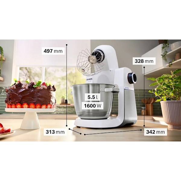 Bosch MUMS6EW00 სერია 6-ის სამზარეულოს კომბაინი გამოირჩევა 1600 ვატიანი მძლავრი ძრავით, რომელიც უზრუნველყოფს სწრაფ და ეფექტურ მუშაობას. მისი 5.5 ლიტრიანი უჟანგავი ფოლადის თასი საშუალებას გაძლევთ დაამუშაოთ დიდი რაოდენობის ინგრედიენტები ერთდროულად, რაც იდეალურია ცომის მოსამზადებლად.