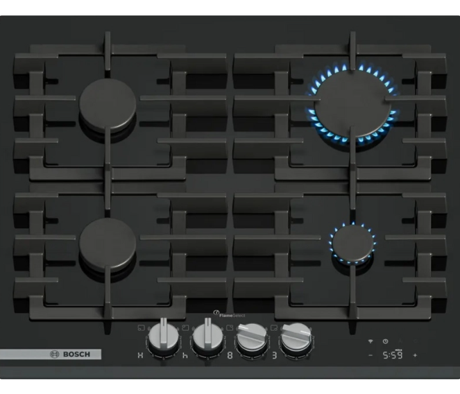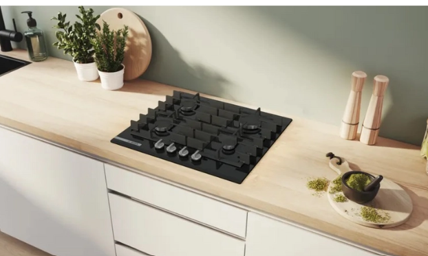 გაზქურის ზედაპირი BOSCH PRP6A6H40R აერთიანებს მაღალი ხარისხის მასალებს, თანამედროვე დიზაინს და ეფექტურობას ყოველდღიური მოხმარებისთვის. გამორჩეული შავი შუშის ზედაპირი და უჟანგავი ფოლადის ელემენტები ქმნის ელეგანტურ იერს და მარტივად ეწერება თანამედროვე სამზარეულოში. მოდელი აღჭურვილია ოთხი გაზის კონფორით, მათ შორის ერთი ძლიერი WOK ცეცხლით, რაც იდეალურია როგორც სწრაფად მომზადებისთვის, ისე დიდ პორციებზე სამუშაოდ. FlameSelect ტექნოლოგია გაძლევთ ცეცხლის ცხრა ზუსტი საფეხურის კონტროლს, რაც უზრუნველყოფს მოსამზადებელი პროცესის სრულ კონტროლს. თუჯის სადგამები იძლევა სტაბილურობას და გამძლეობას ხანგრძლივი გამოყენებისთვის.