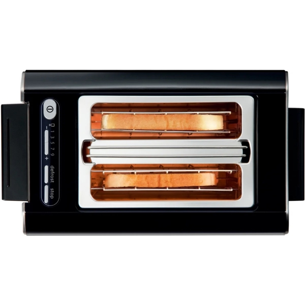 Bosch TAT8613N არის სტაილინის სერიის კომპაქტური ტოსტერი, რომელიც აერთიანებს თანამედროვე დიზაინსა და მოწინავე ტექნოლოგიებს. მისი 860 ვტ სიმძლავრის კვარცის მინის გათბობის სისტემა MirrorHeating უზრუნველყოფს თანაბარ და ეფექტურ ტოსტირებას. AutoHeat Control ფუნქცია ავტომატურად არეგულირებს ტემპერატურას, რაც უზრუნველყოფს მუდმივ შედეგს. 9 დონიანი ტოსტირების რეგულირება, დეფროსტის და ხელახალი გათბობის ფუნქციები, ასევე ინტეგრირებული ბულკის თარო და მაღალი აწევის მექანიზმი ამარტივებს გამოყენებას. თერმულად იზოლირებული კორპუსი და უსაფრთხოების ავტომატური გამორთვის სისტემა უზრუნველყოფს უსაფრთხოებას. მოსახსნელი ნამცეცების ლანგარი და კაბელის შესანახი სისტემა უზრუნველყოფს მარტივ მოვლას და შენახვას.