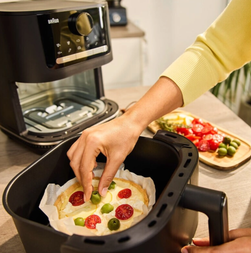 აეროგრილი Braun HF5050IBK FR Black 6L წარმოადგენს მრავალფუნქციურ სამზარეულოს მოწყობილობას, რომელიც საშუალებას გაძლევთ მოამზადოთ ჯანსაღი და გემრიელი კერძები მინიმალური ზეთის გამოყენებით. 6 ლიტრიანი ტევადობა იდეალურია როგორც მცირე ოჯახისთვის, ისე მეგობრებთან ერთად საღამოებისთვის. ძლიერი ცირკულაციური ჰაერის სისტემა უზრუნველყოფს თანაბარ და სწრაფ მომზადებას, რაც ხდის საკვებს ხრაშუნა ზედაპირით და რბილი ტექსტურით. მოწყობილობა აღჭურვილია სხვადასხვა რეჟიმებითა და ტემპერატურის რეგულირებით, რაც გაძლევთ თავისუფლებას მოამზადოთ ხორცი, ბოსტნეული, დესერტები და სხვა კერძები პროფესიონალური ხარისხით. თანამედროვე დიზაინი შავ ფერში და კომპაქტური ფორმა იდეალურად ერგება ნებისმიერ სამზარეულოს. Braun HF5050IBK FR აერთიანებს სიმარტივეს, ეფექტურობასა და სანდოობას, რაც მას შეუცვლელ დამხმარედ აქცევს ყოველდღიურ კულინარიულ საქმიანობაში.