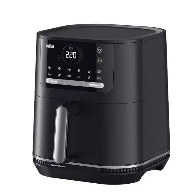 აეროგრილი BRAUN HF5050IBK წარმოადგენს მრავალფუნქციურ სამზარეულო მოწყობილობას, რომელიც აერთიანებს ჯანმრთელ კვებასა და კომფორტულ მომზადების პროცესს. ინოვაციური Rapid Air ტექნოლოგია უზრუნველყოფს ცხელი ჰაერის თანაბარ ცირკულაციას, რაც იძლევა ხრაშუნა და გემრიელი შედეგის მიღებას ზეთის მინიმალური რაოდენობით ან საერთოდ მის გარეშე. მოწყობილობა აღჭურვილია 6 წინასწარ დაპროგრამებული რეჟიმით, მათ შორის ბოსტნეულის, ქათმის, კარტოფილისა და ტკბილეულის მოსამზადებლად. 6 ლიტრიანი მოცულობა იდეალურია ოჯახური პორციებისთვის, ხოლო ტემპერატურისა და დროის ციფრული კონტროლი გაძლევთ სრულ კონტროლს მომზადების პროცესზე. მოხსნადი კალათა მარტივად იწმინდება და თავსებადია ჭურჭლის სარეცხ მანქანასთან. ელეგანტური შავი დიზაინი BRAUN HF5050IBK-ს ხდის არა მხოლოდ პრაქტიკულ, არამედ ესთეტიკურად მიმზიდველ ელემენტად თქვენს სამზარეულოში.