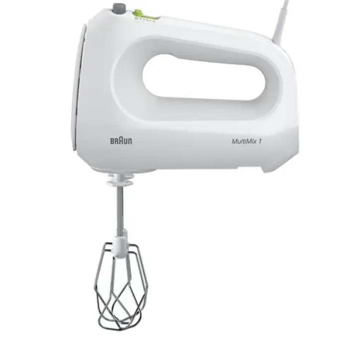 მიქსერი BRAUN HM1010WH არის კომპაქტური და მძლავრი მოწყობილობა, რომელიც იდეალურია ყოველდღიური საკონდიტრო და კულინარიული ამოცანებისთვის. მისი 400 ვატიანი ძრავი უზრუნველყოფს სწრაფ და ეფექტურ მუშაობას, ხოლო 4 სიჩქარე და დამატებითი ტურბო რეჟიმი საშუალებას გაძლევთ ზუსტად და მარტივად მოამზადოთ სხვადასხვა რეცეპტები. მოწყობილობა აღჭურვილია EasyClick სისტემით, რაც უზრუნველყოფს ბითერებისა და ცომის კაუჭების მარტივ და სწრაფ შეცვლას. მისი მსუბუქი და ერგონომიული დიზაინი უზრუნველყოფს კომფორტულ გამოყენებას, ხოლო კაბელის მოსახერხებელი შესაფუთი სისტემა ამარტივებს შენახვას. კომპლექტში შედის უჟანგავი ფოლადის ბითერები და ცომის კაუჭები, რომლებიც უსაფრთხოა ჭურჭლის სარეცხ მანქანაში რეცხვისთვის. BRAUN HM1010WH არის სანდო და მრავალფუნქციური არჩევანი ნებისმიერი სამზარეულოსთვის.
