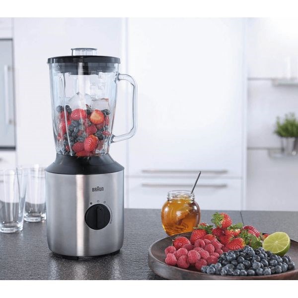 Braun JB3272SI ბლენდერი გამოირჩევა 800 ვატიანი სიმძლავრით და 1.5 ლიტრიანი თერმომდგრადი მინის ჭიქით, რაც საშუალებას გაძლევთ სწრაფად და ეფექტურად მოამზადოთ სხვადასხვა სმუზი, სუპი და სასმელი.