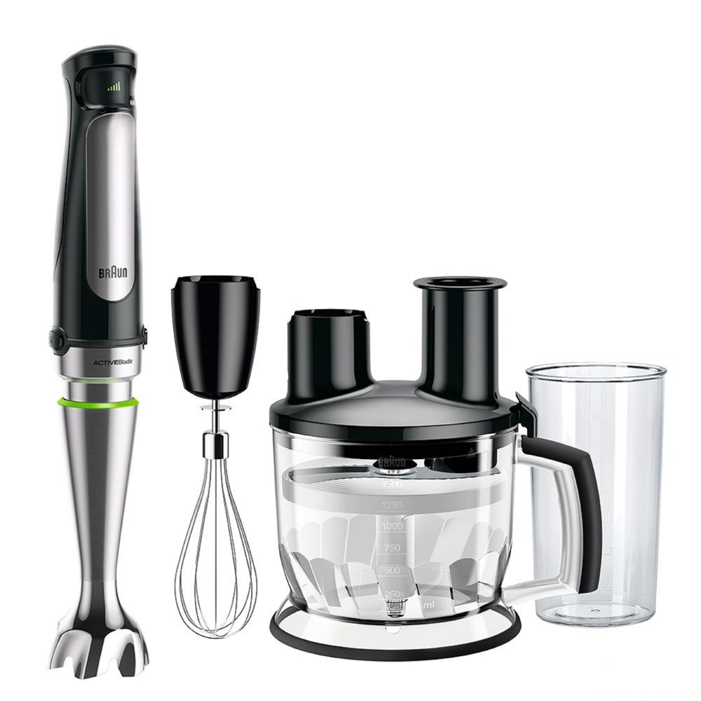 ხელის ბლენდერი Braun MQ7075X გაძლევთ სრულ თავისუფლებას სამზარეულოში სწრაფი და ხარისხიანი კერძების მოსამზადებლად. 1000 ვატიანი ძლიერი ძრავა და ActiveBlade ტექნოლოგია უზრუნველყოფს მაღალი ეფექტურობის შერევას და დამუშავებას ყველაზე მყარ ინგრედიენტებზეც კი. SplashControl სისტემა იცავს სამზარეულოს დაბინძურებისგან, ხოლო EasyClick Plus ფუნქცია ამარტივებს აქსესუარების სწრაფ და მარტივ შეცვლას. კომპლექტში შედის სხვადასხვა დანიშნულების აქსესუარები, რომლებიც საშუალებას გაძლევთ დააქუცმაცოთ, შეურიოთ, ათქვიფოთ და დაამუშაოთ სხვადასხვა სახის პროდუქტები. თანამედროვე დიზაინი და მოსახერხებელი მართვა Braun MQ7075X-ს აქცევს სამზარეულოს შეუცვლელ დამხმარედ.