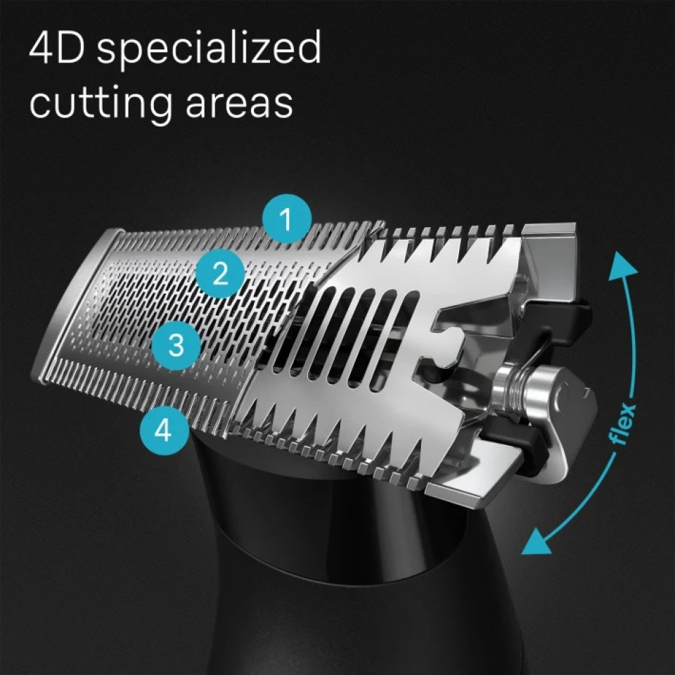 4D-Blade ტექნოლოგია უზრუნველყოფს სუფთა და ზუსტ გაპარსვას ერთ მოძრაობაში, ხოლო დამატებითი ტრიალიანი თავი საშუალებას გაძლევთ მარტივად მიაღწიოთ რთულად მისადგომ ადგილებს. ჭკვიანი AutoSense ტექნოლოგია ავტომატურად არეგულირებს სიმძლავრეს წვერის სიმკვრივის მიხედვით, რაც უფრო ეფექტურს ხდის პარსვის პროცესს.