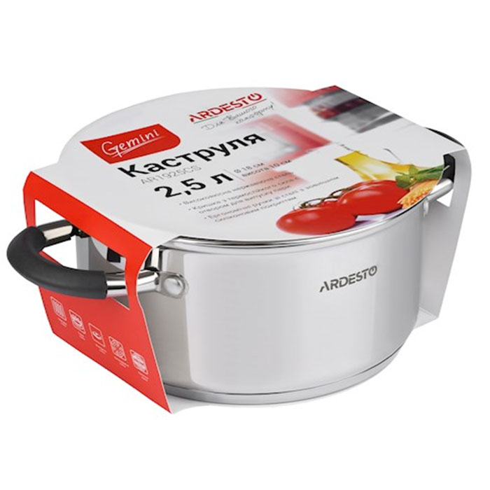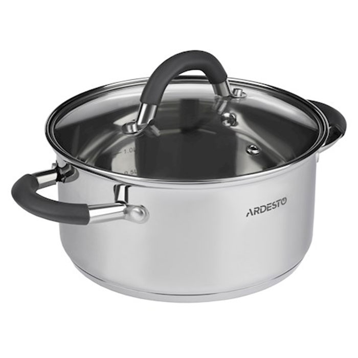 ქვაბი Casserole Ardesto Gemini, glass lid, 2.5 l, gray handles with silicone