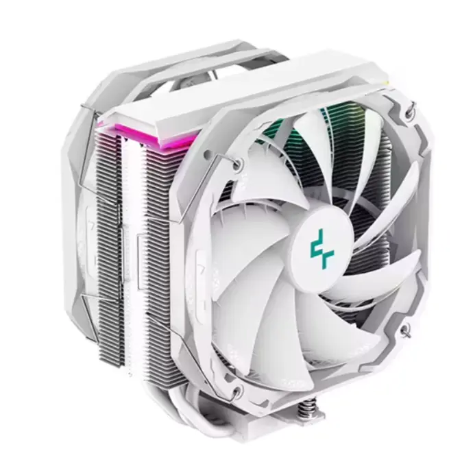 ქულერი DeepCool AS500 PLUS WH წარმოადგენს მაღალი წარმადობის ჰაერის გაგრილების სისტემას, რომელიც შექმნილია ძლიერი პროცესორების ეფექტურად გასაცივებლად. თეთრი ფერის დიზაინი და RGB განათება მას ანიჭებს ელეგანტურ და თანამედროვე იერს, რაც იდეალურად ერგება ნებისმიერი გეიმინგ სისტემის სტილს. აღჭურვილია ხუთი 6მმ სითბოს მილი და ორი მაღალი სიჩქარის 140მმ გულშემატკივარი, რომლებიც უზრუნველყოფენ შესანიშნავ გაგრილებას მინიმალური ხმაურით. PWM კონტროლი საშუალებას გაძლევს მოახდინო სიჩქარის რეგულირება ტემპერატურის შესაბამისად. AS500 PLUS WH თავსებადია Intel და AMD პლატფორმებთან და მარტივი ინსტალაციით გამოირჩევა. ეს ქულერი იდეალური არჩევანია მომხმარებლებისთვის, რომლებიც ეძებენ სიმძლავრეს, სიჩუმეს და ესთეტიკას ერთ მოწყობილობაში.