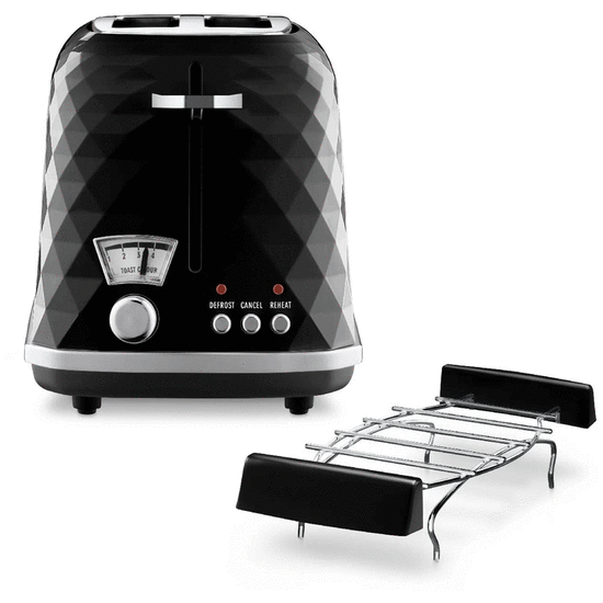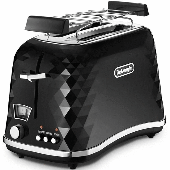 ტოსტერი Delonghi CTJ2103BK აერთიანებს იტალიურ დიზაინსა და ფუნქციონალურობას. მისი უნიკალური ბრილიანტისებური ზედაპირი და კომპაქტური ზომა (31x18x20 სმ) იდეალურია ნებისმიერი სამზარეულოსთვის. 900 ვატიანი სიმძლავრე უზრუნველყოფს სწრაფ და თანაბარ ტოსტირებას. მოწყობილობა აღჭურვილია 6 დონის ყავისფრად შემწვარი რეგულაციით, რაც საშუალებას გაძლევთ მოირგოთ ტოსტირება თქვენი გემოვნების შესაბამისად. დამატებითი ფუნქციები მოიცავს გალღობის, ხელახლა გაცხელების და გაუქმების რეჟიმებს. მაღალი აწევის მექანიზმი ამარტივებს მცირე ზომის პურის ნაჭრების ამოღებას. მოსახსნელი ნამცეცების უჯრა უზრუნველყოფს მარტივ წმენდას. Delonghi CTJ2103BK წარმოადგენს სტილისა და პრაქტიკულობის იდეალურ შერწყმას თქვენი ყოველდღიური საუზმისთვის.