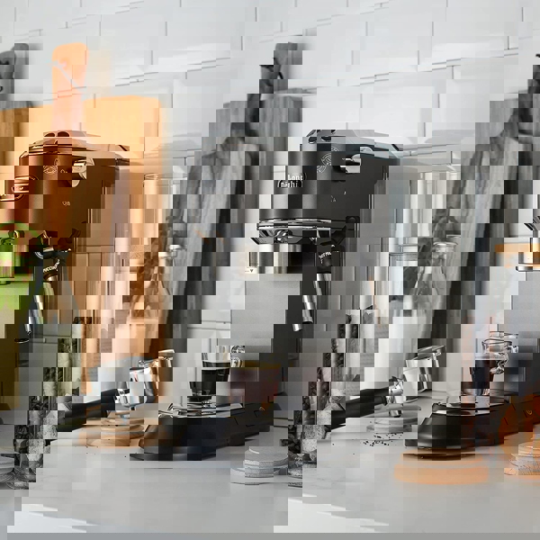 DeLonghi EC685.BK ყავის აპარატი არის სტილური და მაღალეფექტური მოწყობილობა, რომელიც შექმნილია სრულყოფილი ესპრესო და სხვა ყავის სასმელების მოსამზადებლად. მისი 1300W სიმძლავრე და 1.1 ლიტრიანი წყლის რეზერვუარი უზრუნველყოფს სწრაფ და კომფორტულ მომზადებას. აპარატს აქვს თერმობლოკის ტექნოლოგია, რომელიც ინარჩუნებს იდეალურ ტემპერატურას თითოეული ფინჯანისთვის. მისი შავი ელეგანტური დიზაინი და კომპაქტური ზომა ადვილად თავსდება ნებისმიერი სამზარეულოს სივრცეში. DeLonghi EC685.BK იდეალური არჩევანია ყავის მოყვარულთათვის, რომლებიც აფასებენ გემოსა და ხარისხს.