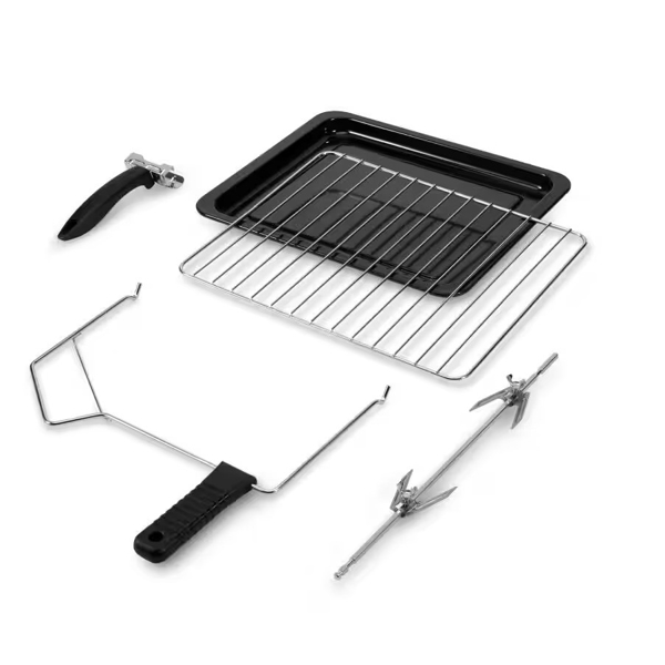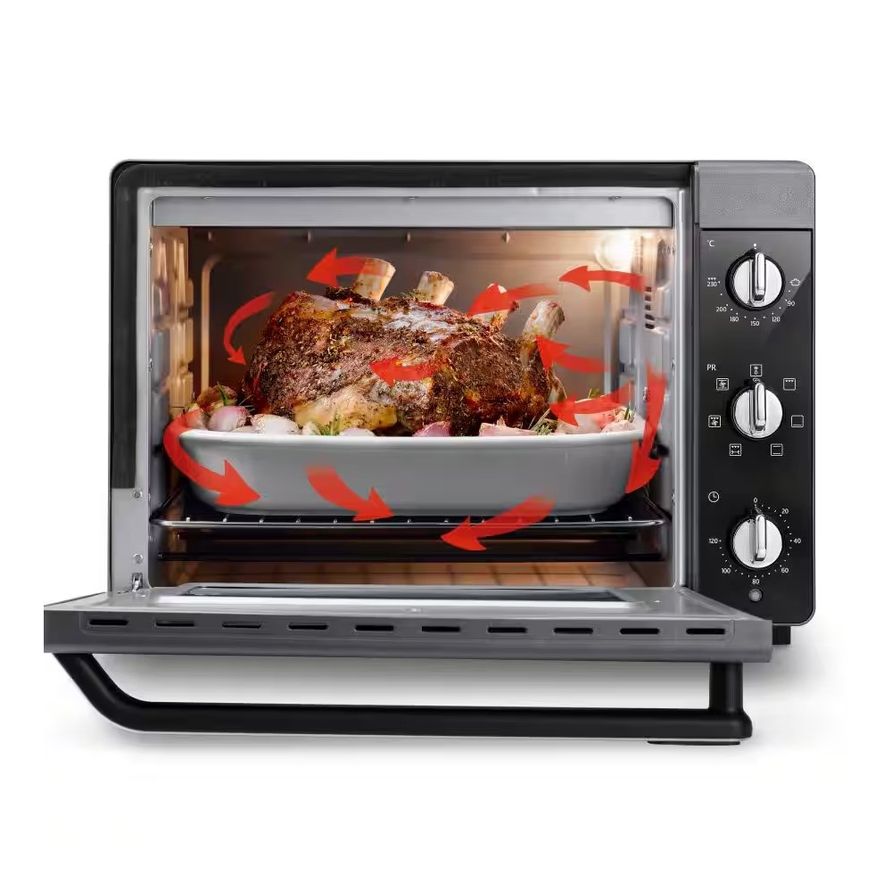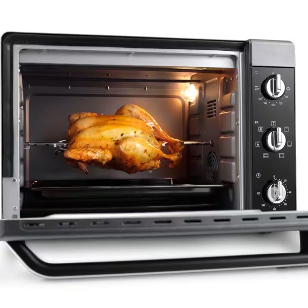 ელექტრო ღუმელი DeLonghi EO40123.S წარმოადგენს მრავალფუნქციურ სამზარეულოს მოწყობილობას, რომელიც იდეალურია როგორც ყოველდღიური, ისე სპეციალური კერძების მოსამზადებლად. მისი 40 ლიტრიანი მოცულობა და 2000 ვატიანი სიმძლავრე უზრუნველყოფს სწრაფ და თანაბარ გათბობას. ღუმელი აღჭურვილია შვიდი სხვადასხვა რეჟიმით, მათ შორის: კონვექციური ცხობა, ტრადიციული ცხობა, გრილი, გრატინი, როტისერია, გალღობა და თბილად შენარჩუნება. ტემპერატურის რეგულირება შესაძლებელია 80°C-დან 230°C-მდე, რაც საშუალებას გაძლევთ მოამზადოთ სხვადასხვა ტიპის კერძები. მოწყობილობა ასევე აღჭურვილია 120-წუთიანი ციფრული ტაიმერით, შიდა განათებითა და ავტომატური გამორთვის ფუნქციით. კომპლექტში შედის საცხობი ფორმა, ცხაური და როტისერიის ნაკრები. მისი კომპაქტური დიზაინი (515x440x360 მმ) და ელეგანტური შავი და ვერცხლისფერი ფერი ხდის მას შესაფერისს ნებისმიერი სამზარეულოსთვის.