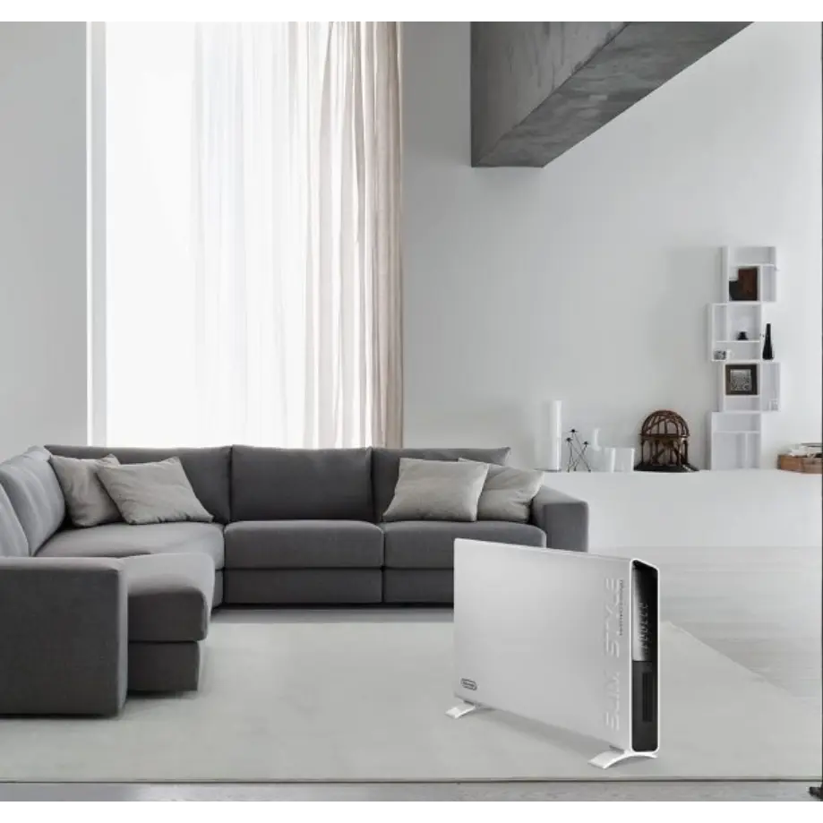 ელექტრო გამათბობელი Delonghi HCX9120E წარმოადგენს თანამედროვე და ენერგოეფექტურ გადაწყვეტას საცხოვრებელი ან საოფისე სივრცის გასათბობად. მისი 2000 ვატიანი სიმძლავრე და სამი გათბობის დონე (800/1200/2000 ვტ) უზრუნველყოფს სწრაფ და თანაბარ გათბობას. HI-FI ტექნოლოგიის ორმაგი ვენტილატორი აუმჯობესებს თბური ჰაერის განაწილებას, რაც უზრუნველყოფს კომფორტულ ტემპერატურას ოთახში. მოწყობილობა აღჭურვილია ციფრული თერმოსტატით, 24-საათიანი ტაიმერით და ECO Plus ფუნქციით, რომელიც ავტომატურად არეგულირებს ენერგიის მოხმარებას. უსაფრთხოების მიზნით, გათვალისწინებულია გადახურებისგან დაცვა და ავტომატური გამორთვა გადაბრუნების შემთხვევაში. კომპაქტური და ელეგანტური დიზაინი საშუალებას გაძლევთ მოათავსოთ იგი იატაკზე ან კედელზე, რაც ხდის მას იდეალურ არჩევანს ნებისმიერი ინტერიერისთვის.