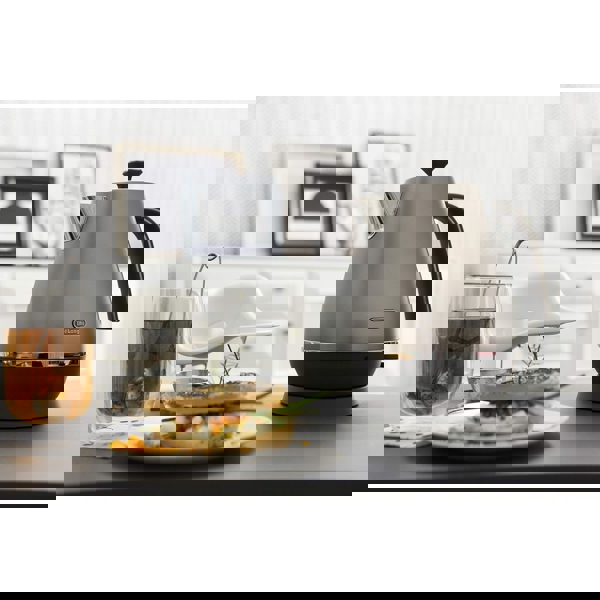 ელექტრო ჩაიდანი DeLonghi KBI2001.S არის თანამედროვე და ფუნქციური მოწყობილობა, რომელიც გამოირჩევა ელეგანტური დიზაინითა და მაღალი ხარისხის შესრულებით. მას აქვს 1.7 ლიტრიანი ტევადობა, რაც საშუალებას გაძლევთ მოამზადოთ ჩაი ან სხვა ცხელი სასმელი ერთდროულად რამდენიმე ადამიანისთვის. 2000 ვატიანი სიმძლავრე უზრუნველყოფს წყლის სწრაფად ადუღებას, რაც ყოველდღიურ გამოყენებას კომფორტულს ხდის. სითბოსგან იზოლირებული სახელური უსაფრთხოებასა და მოხერხებულობას უზრუნველყოფს. მოწყობილობა აღჭურვილია მოხსნადი და სარეცხი ფილტრით, რომელიც იცავს წყალს მინარევებისგან და ყოველთვის ინარჩუნებს სისუფთავეს. მისი ავტომატური გათიშვის ფუნქცია წყლის ადუღების შემდეგ გამორიცხავს ზედმეტი ენერგიის ხარჯვას და ზრდის უსაფრთხოებას. უჟანგავი ფოლადის ზედაპირი და დახვეწილი ვერცხლისფერი დიზაინი ჩაიდანს აქცევს არა მხოლოდ პრაქტიკულ, არამედ ესთეტიკურ ელემენტად თქვენი სამზარეულოსთვის. DeLonghi KBI2001.S არის იდეალური არჩევანი მათთვის, ვისაც სურს კომბინაცია სტილის, ხარისხისა და სისწრაფის ერთ მოწყობილობაში.