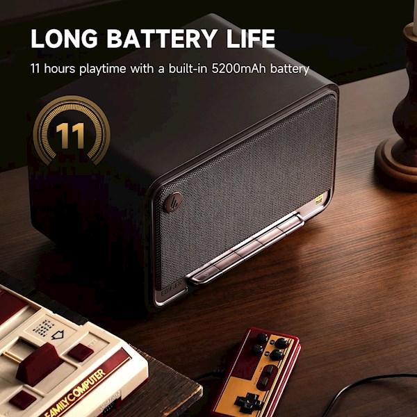 Edifier D32 Tabletop Wireless Speaker Black Walnut არის დახვეწილი და ფუნქციური დინამიკი, რომელიც იდეალურად ერგება როგორც მუსიკის მოყვარულების, ასევე მაღალი ხარისხის აუდიოს მომთხოვნი მომხმარებლების საჭიროებებს. მისი 60W სიმძლავრე უზრუნველყოფს მკვეთრ, დეტალურ და ბალანსირებულ ხმის ხარისხს. Bluetooth ტექნოლოგია იძლევა უსადენო დაკავშირების შესაძლებლობას, ხოლო USB-C და AUX პორტები მრავალფეროვანი მოწყობილობების მარტივად მიერთების საშუალებას. დინამიკი გამოირჩევა Black Walnut-ის ბუნებრივი და ელეგანტური დიზაინით, რომელიც ქმნის კლასიკურ იერსახეს ნებისმიერ ინტერიერში. ეს კომპაქტური და სტილური მოწყობილობა იდეალურია როგორც ყოველდღიური მოსმენისთვის, ასევე განსაკუთრებული მომენტებისთვის.
