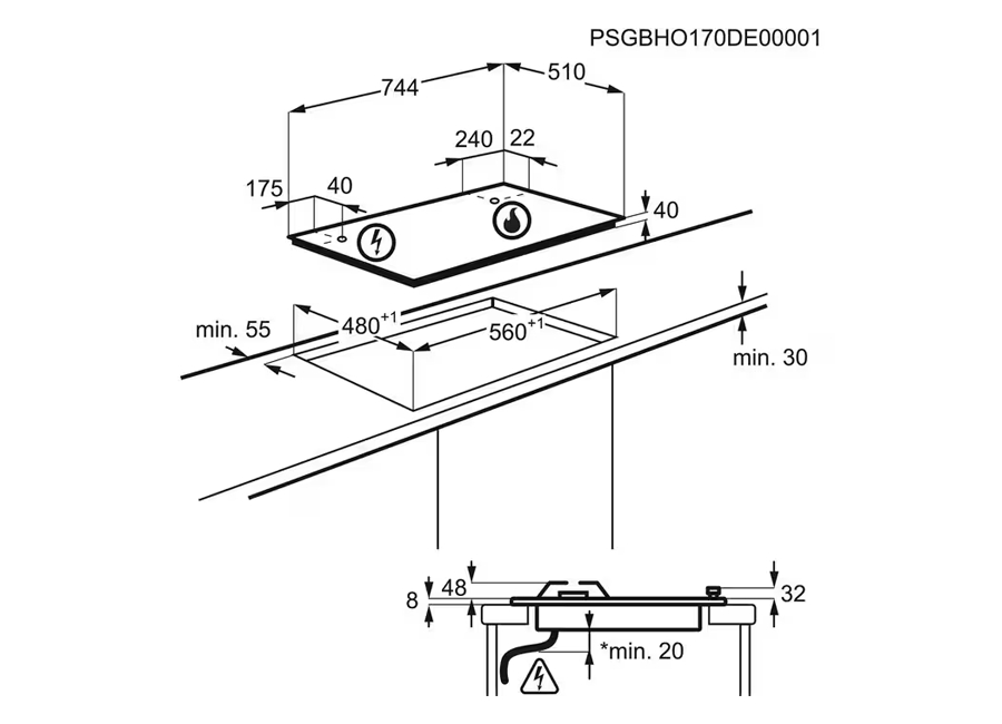 - ჩასაშენებელი ზომები: 48 x 56 cm